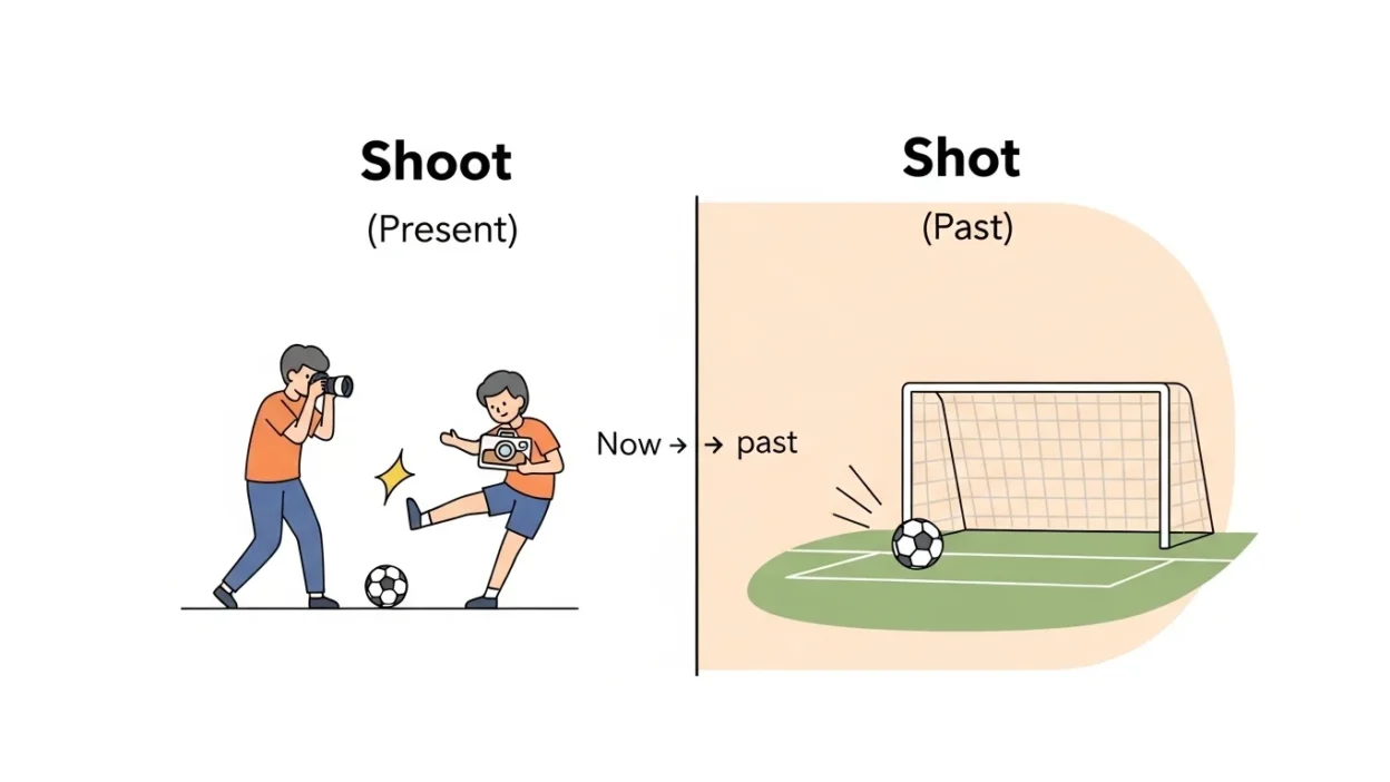 Many learners feel confused about “shoot” and “shot.” They look very similar, and both come from the same verb.